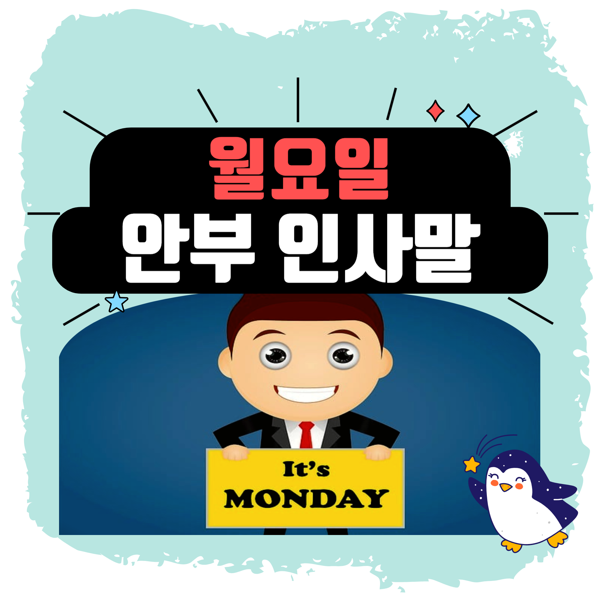 - 월요일 아침이 걱정되세요? 이미 우린 수천번의 월요일을 이겨냈어요. 오늘도 잘 해낼 수 있어요!