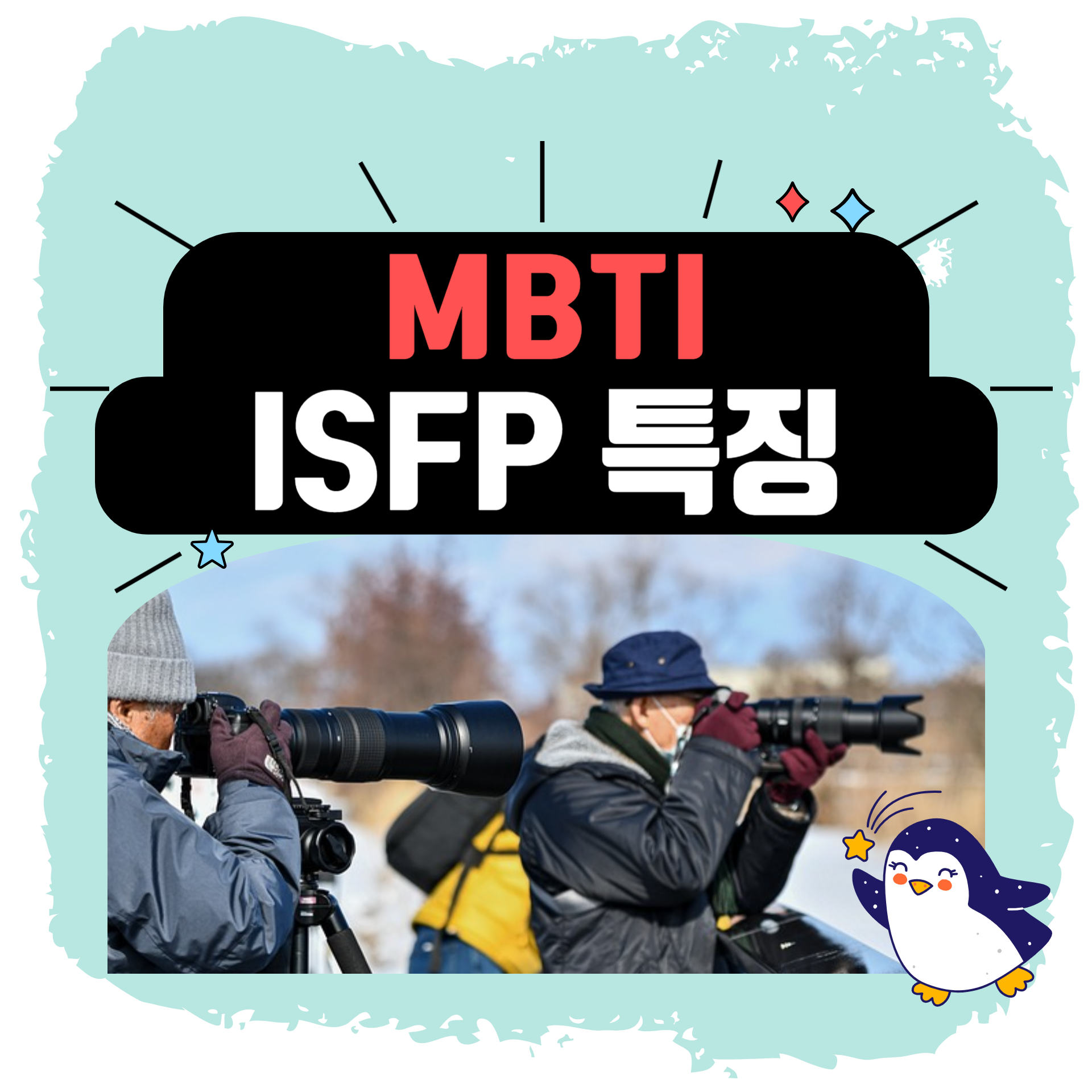 사진작가: ISFP 특징은 렌즈를 통해 세상의 아름다움을 포착하고 독특한 관점을 활용하여 멋진 이미지를 만들 수 있습니다.